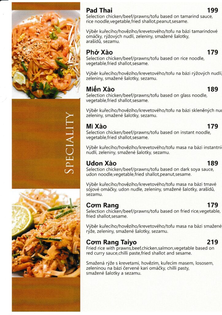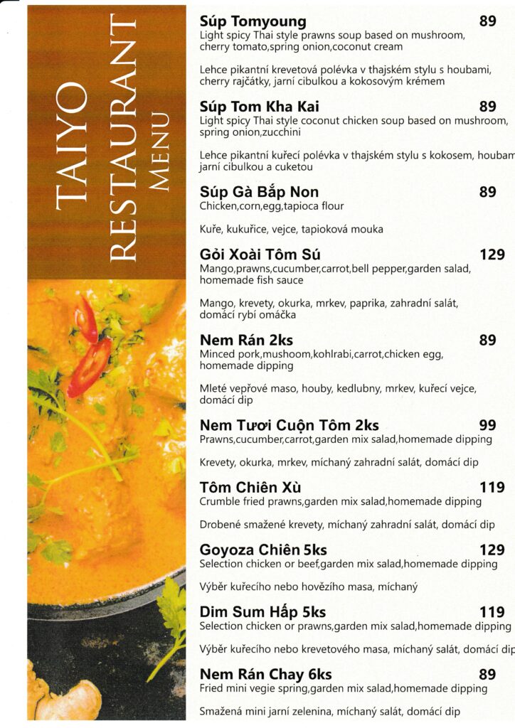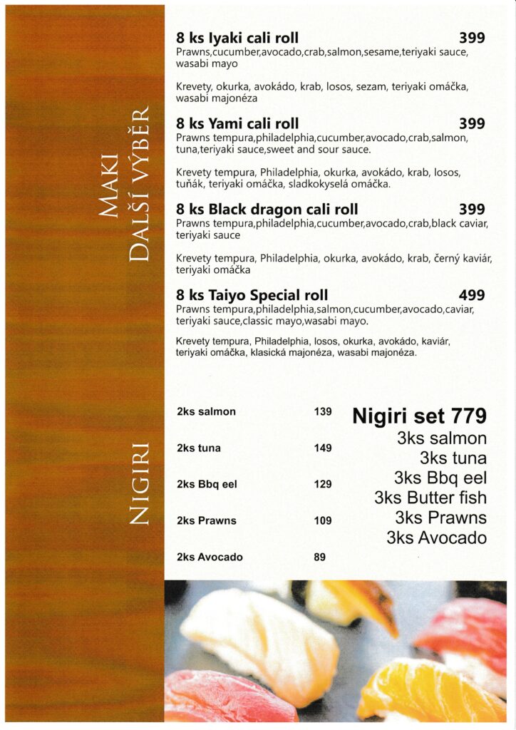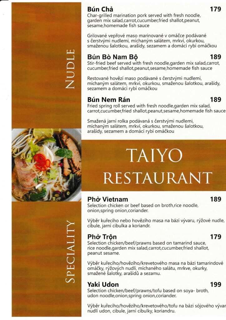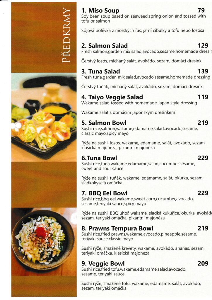 Taiyō restaurant menu